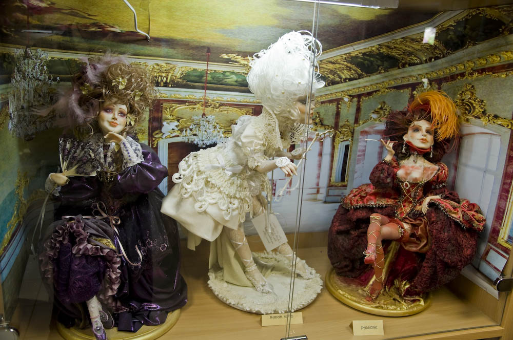 Leļlu muzejā ir iespēja ietērpties skaistos, izsmalcinātos tērpos.
